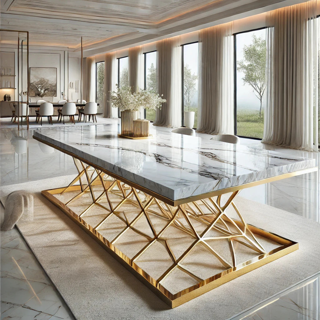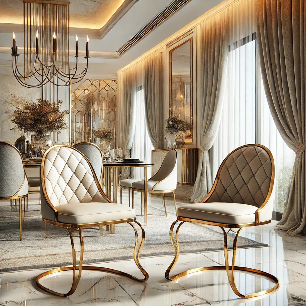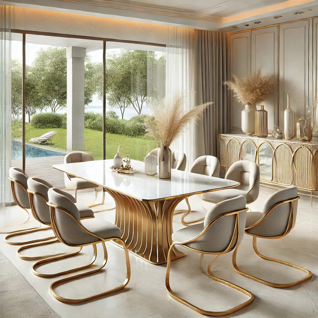 Design Esstisch Set mit 6 Stühlen Gold Metall