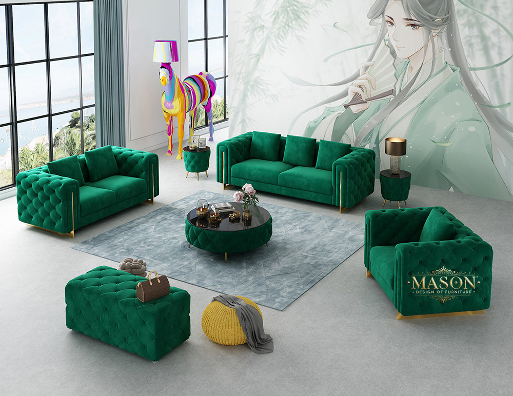 Luxuriöses Designer Sofa Set in Grün-Samt