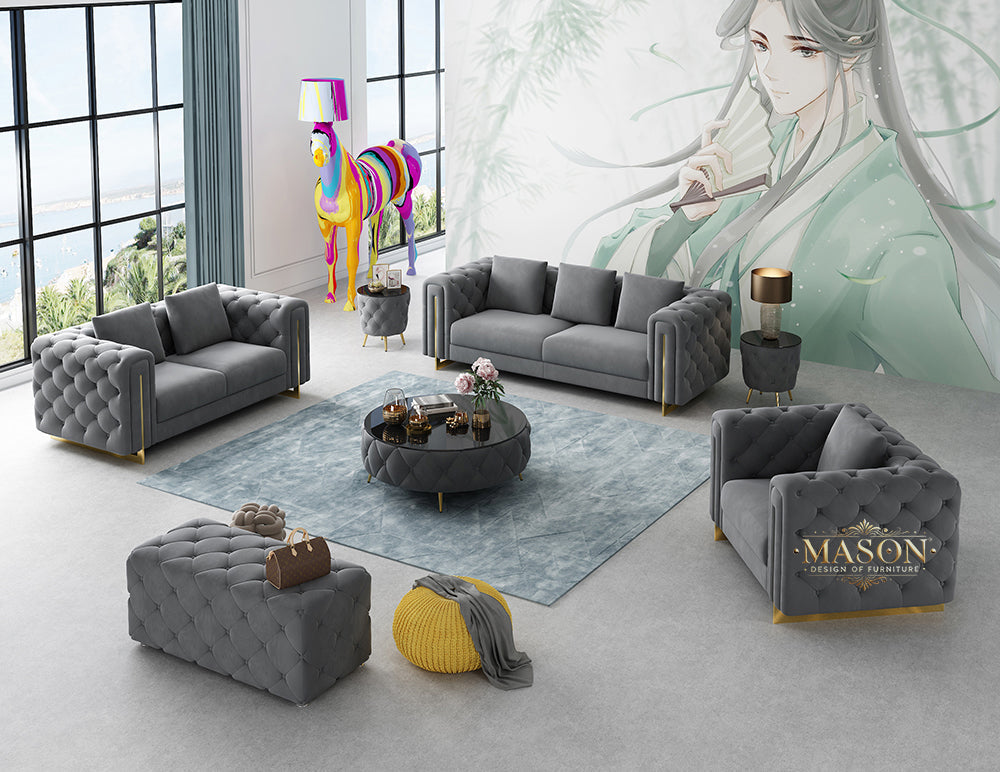 Luxuriöses Designer-Sofa Set in Grau-Samt
