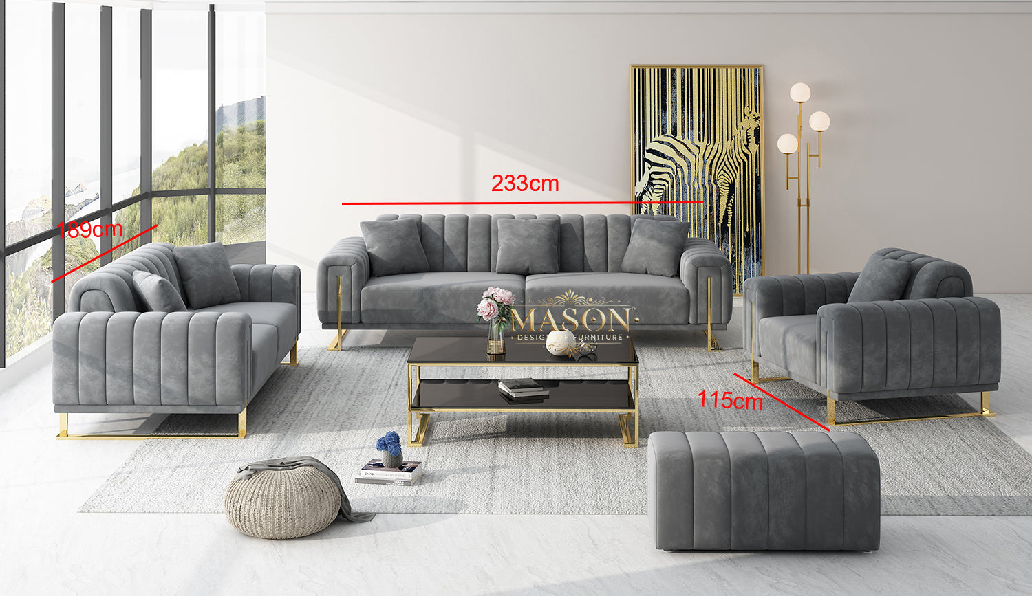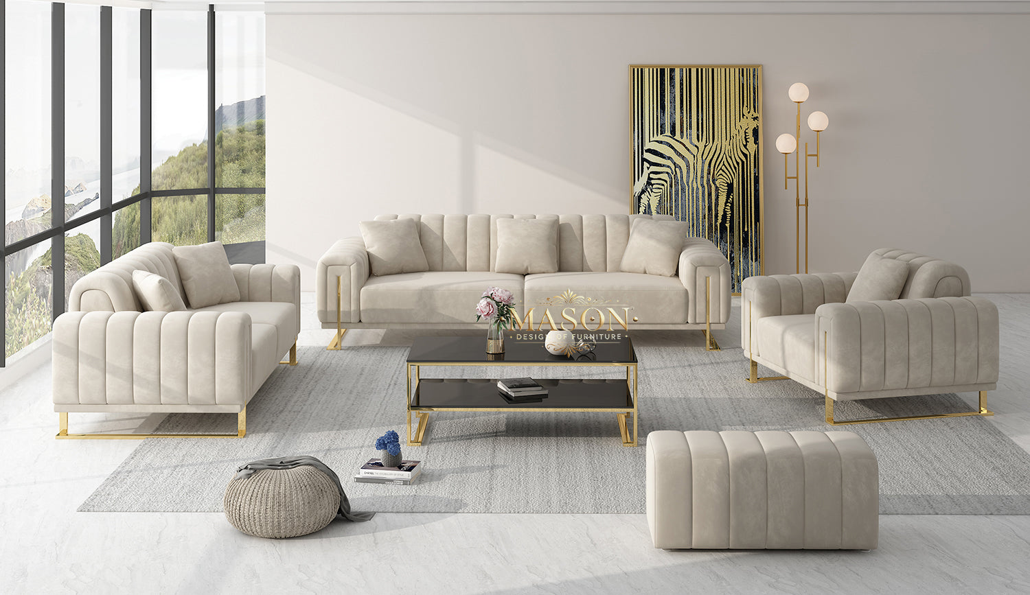 Erleben Sie zeitlose Eleganz und höchsten Komfort mit der 3er Sofa Garnitur Élégance aus der exklusiven Mason Édition. Dieses edle Sofa vereint klassisches Design mit modernen Akzenten und wird zum stilvollen Mittelpunkt Ihres Wohnzimmers.