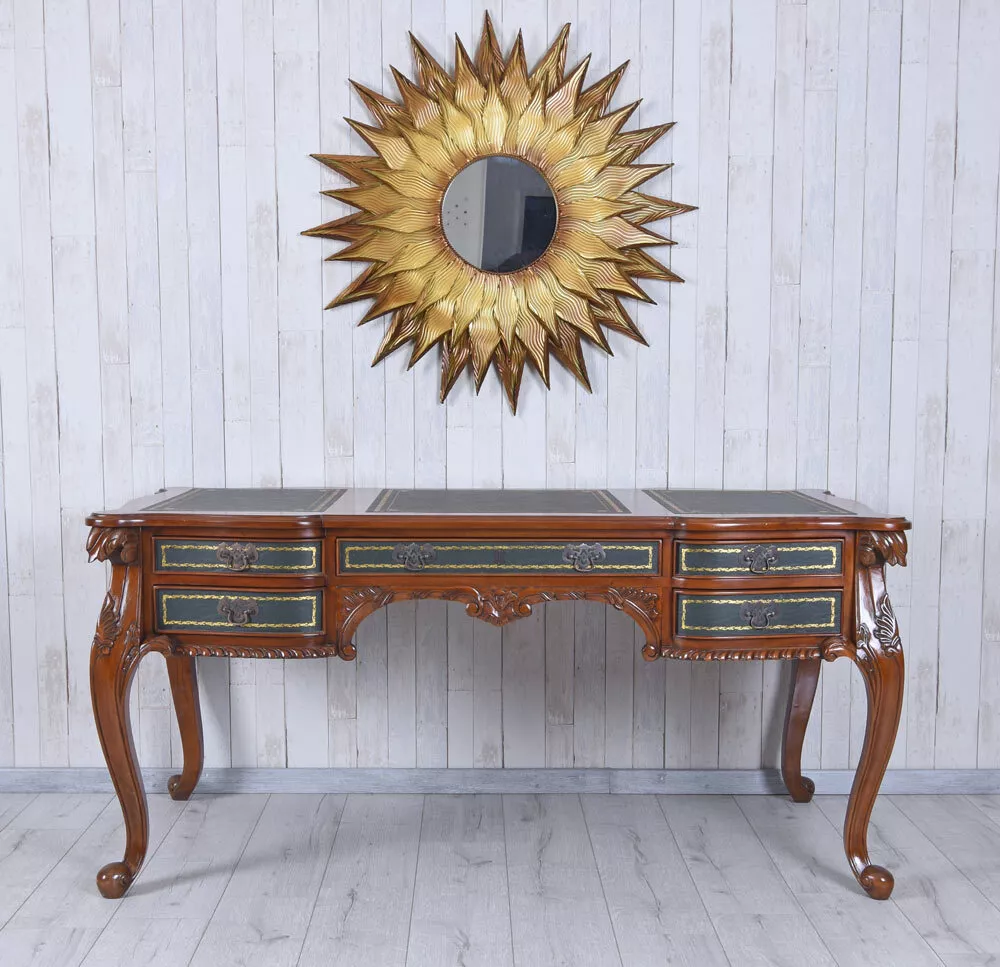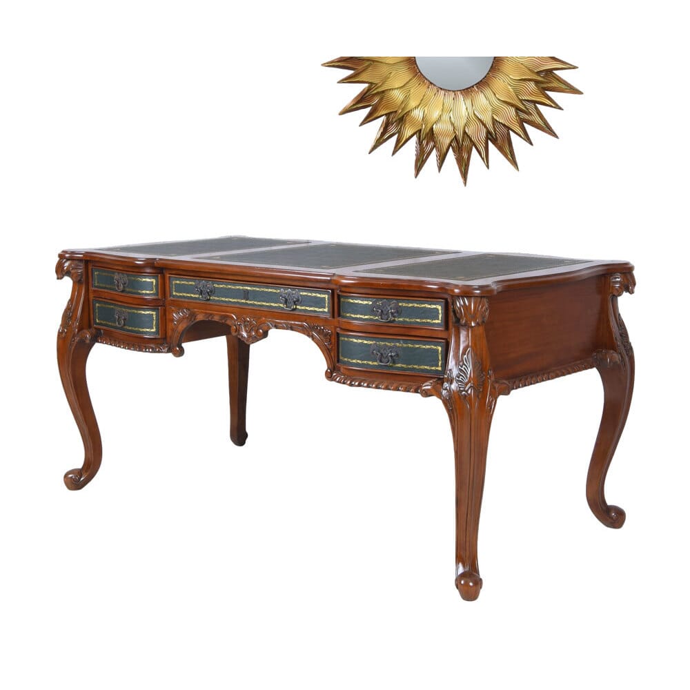 Barock Schreibtisch Antik Mahagoni Holz Chefschreibtisch Ledereinlage