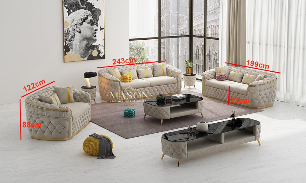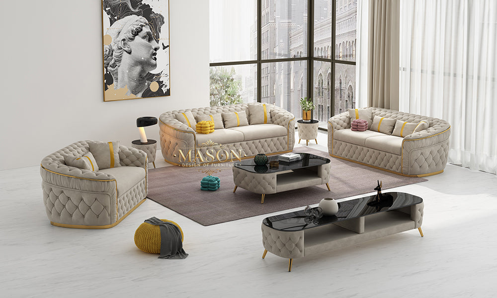 Luxuriöses Designer-Sofa Set in Beige-Samt