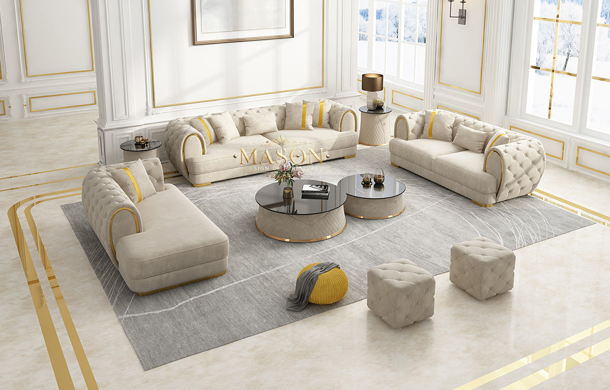 Luxuriöses Designer Sofa Set in Beige-Samt