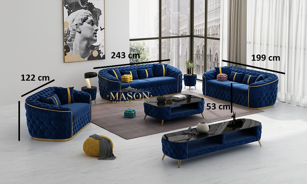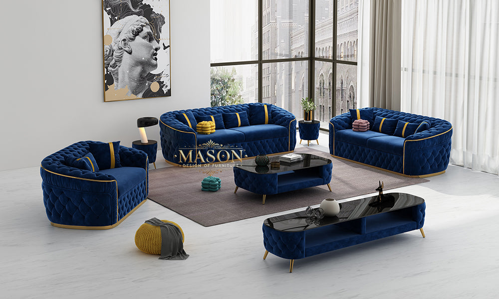 Luxuriöses Designer-Sofa Set in Blau-Samt