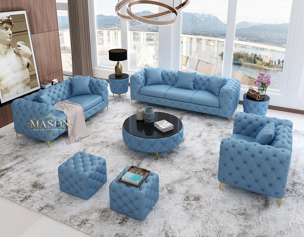 Luxuriöses Designer-Sofa Set in Hellblau-Samt