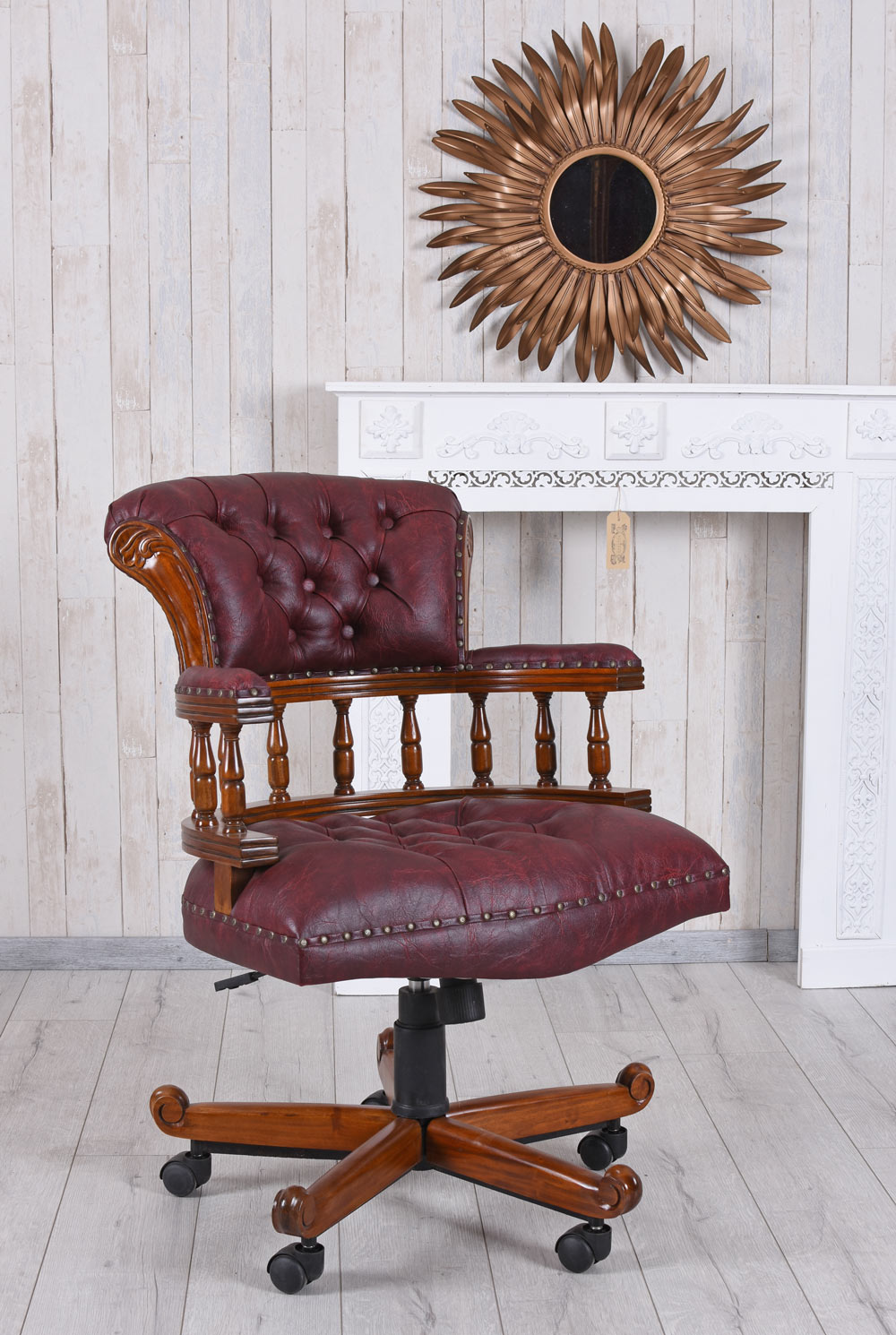 Englischer Chefsessel Bürostuhl Chesterfield Bürosessel Mahagoni Ledersessel