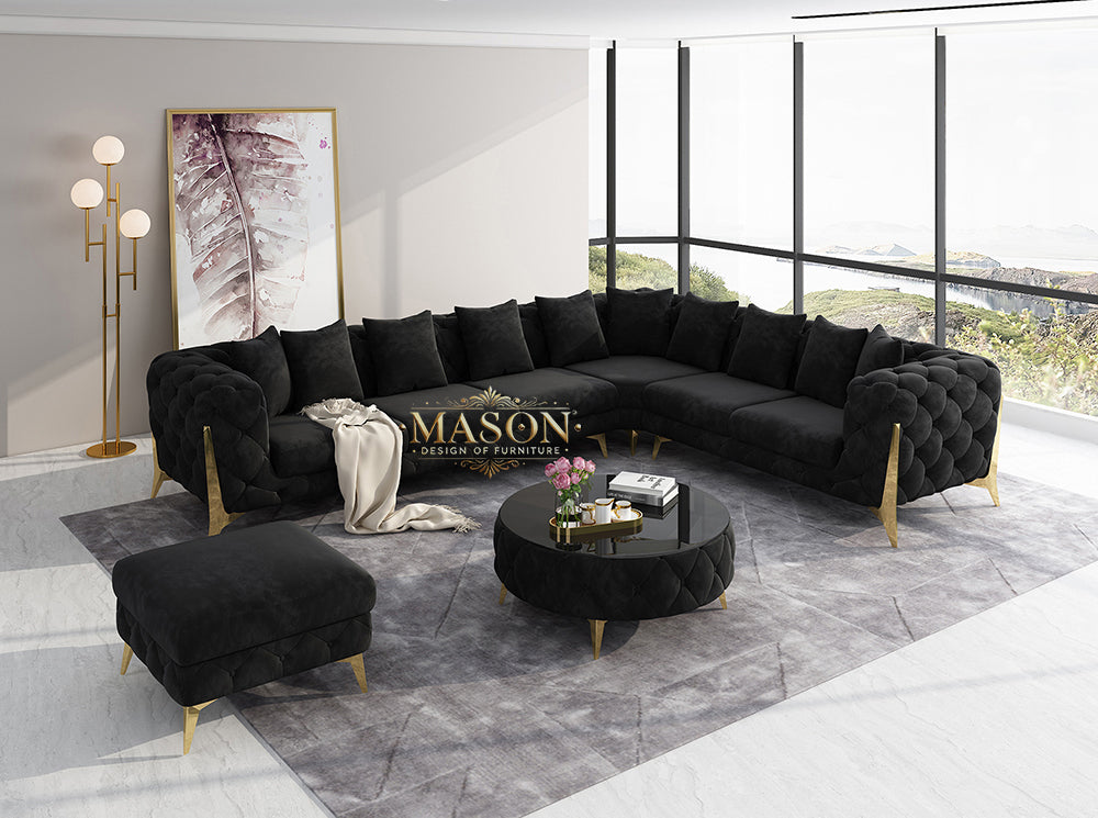 Luxus Sofa Wohnlandschaft L-Form Samt Schwarz