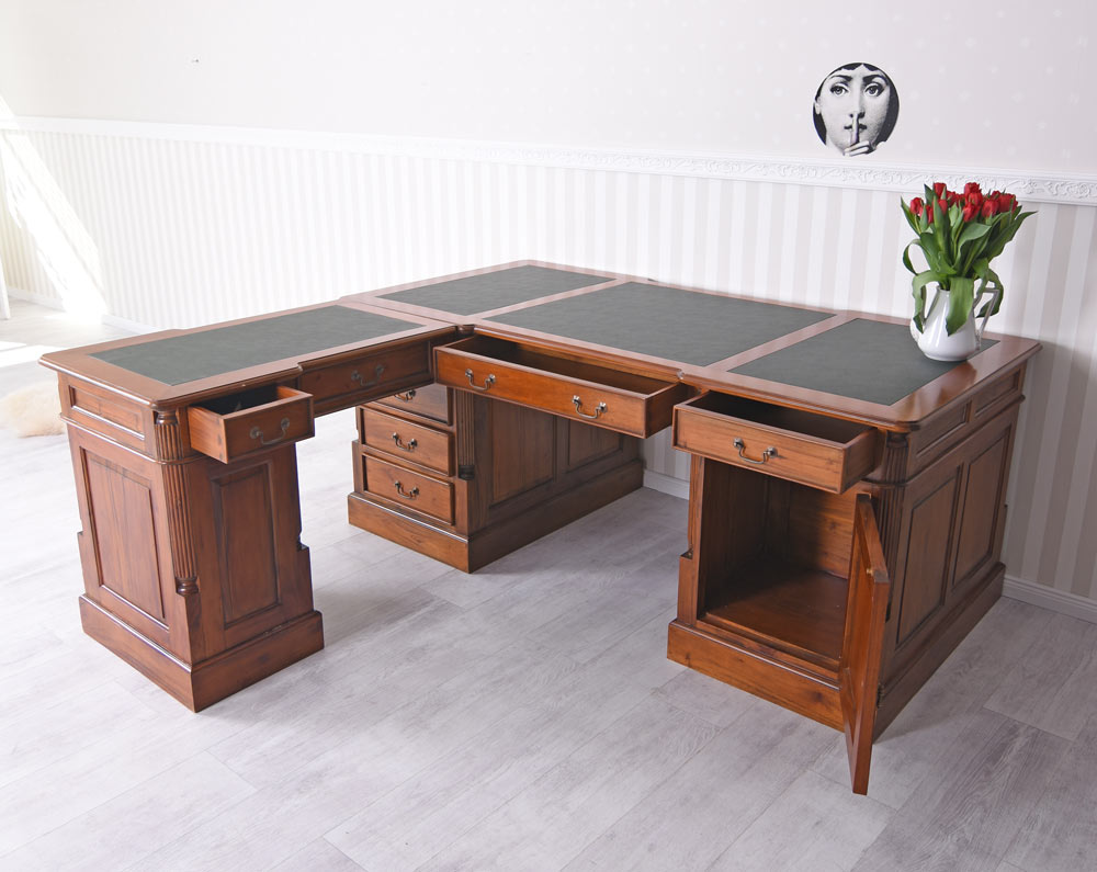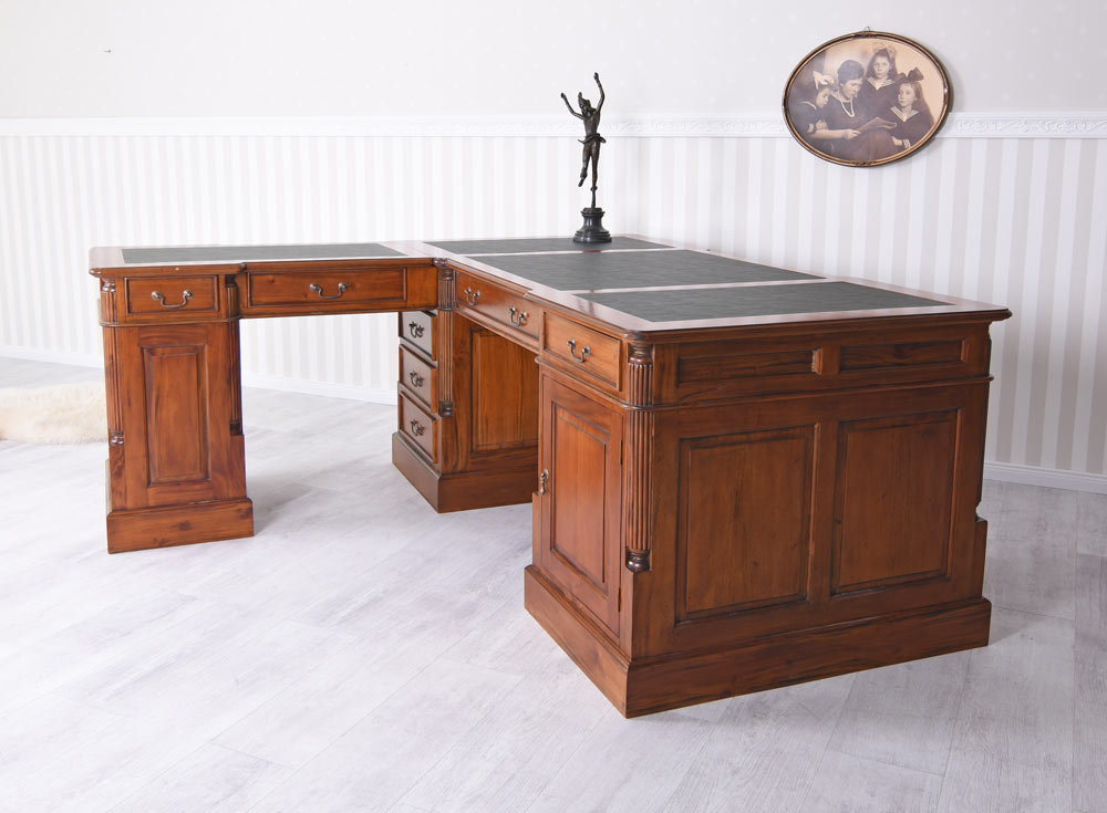 Mahagoni Schreibtisch Partnerdesk Winkelschreibtisch Eckschreibtisch massiv