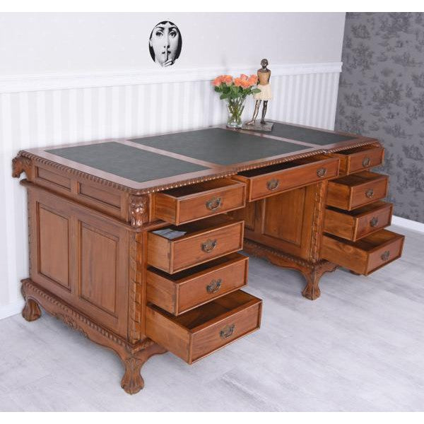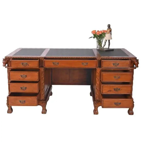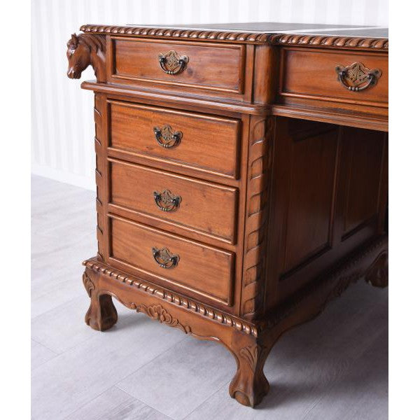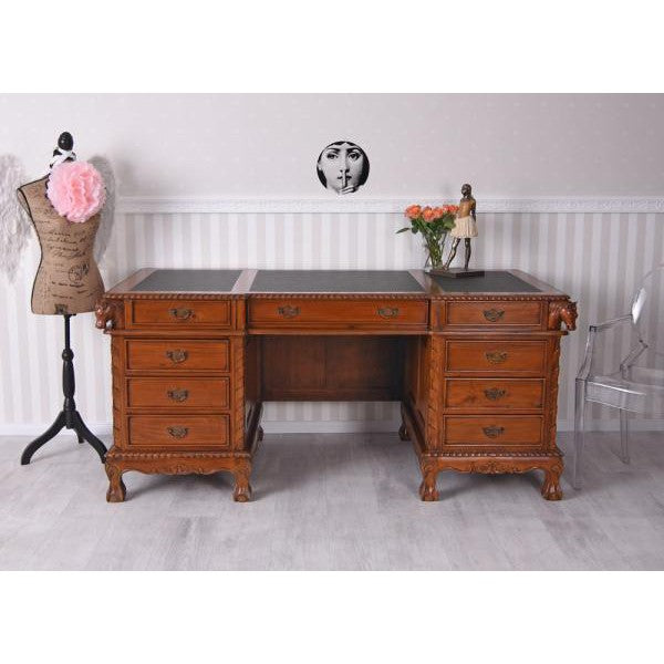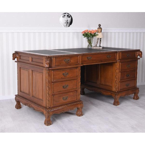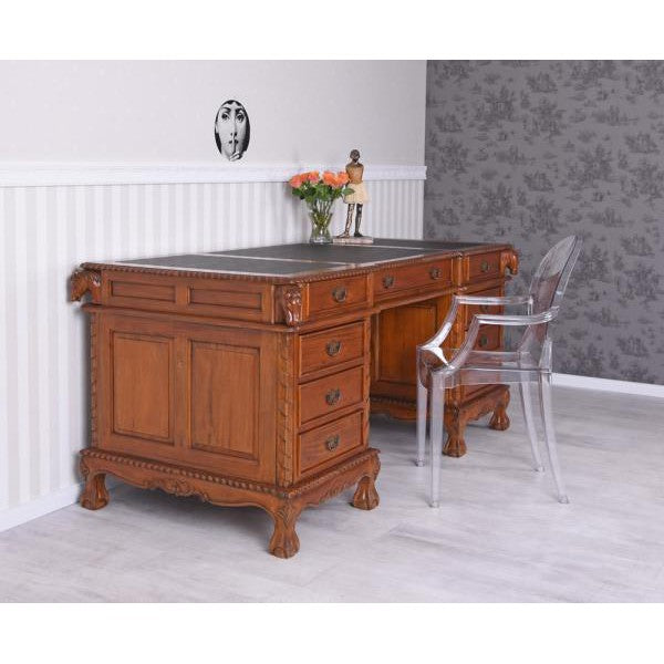 Aus massivem Mahagoniholz & Schreibeinlage aus hochwertigem Kunstleder.