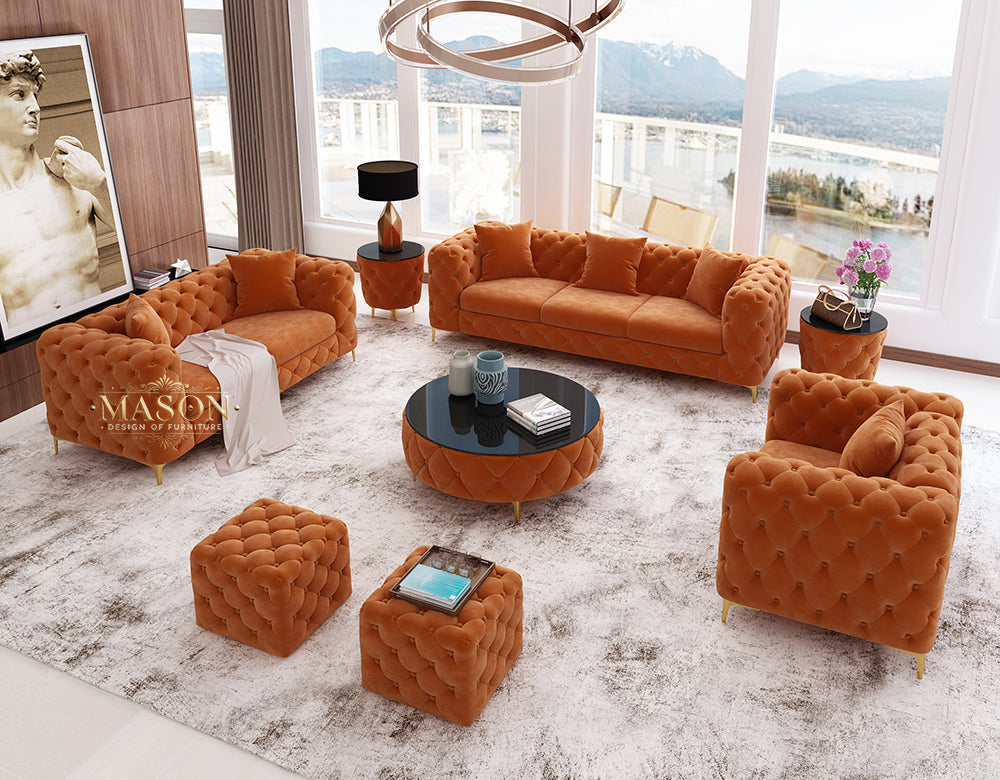 Luxuriöses Designer-Sofa Set in Orange-Samt